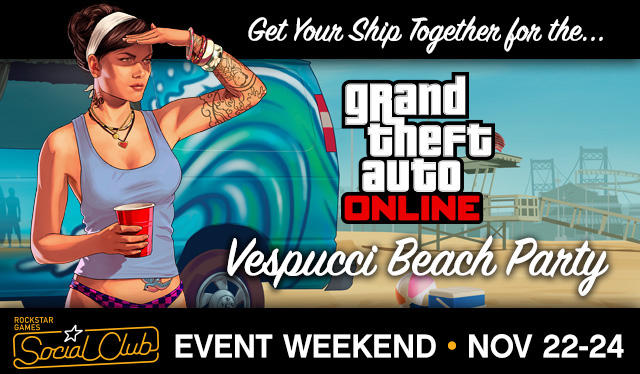 This weekend, Friday November 22nd through Sunday November 24th, hit the beaches of Vespucci, Chumash and Paleto Bay for the very first Grand Theft Auto Online Social Club Event Weekend.